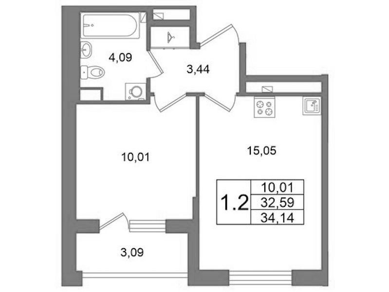 • Площадь кухни15,05 м2