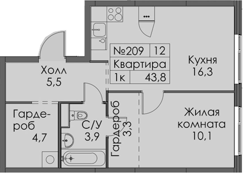 - Площадь43,8 м2