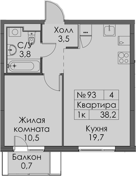 - Площадь38,2 м2