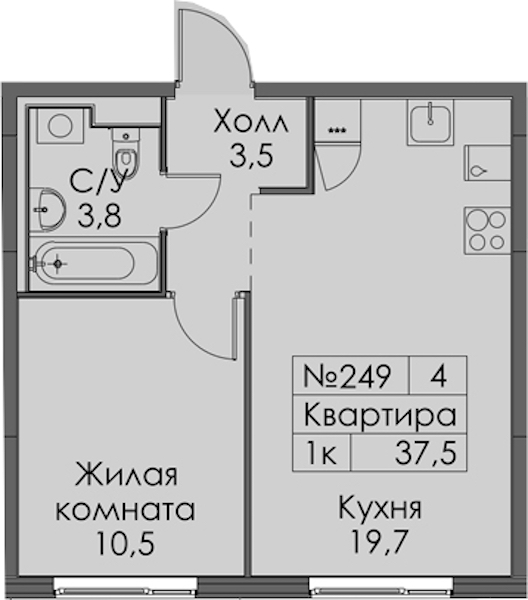 • Площадь37,5 м2