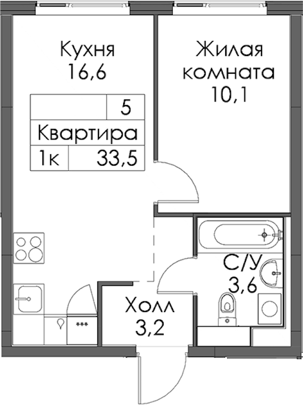 - Площадь33,5 м2