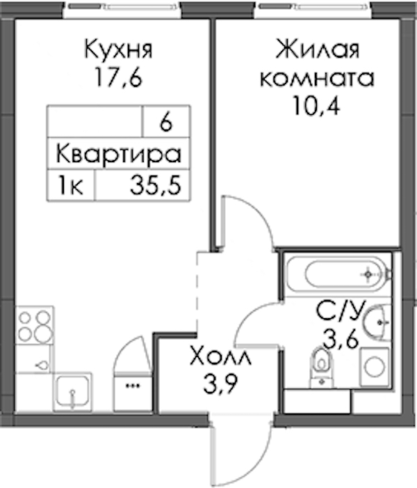 - Площадь35,5 м2
