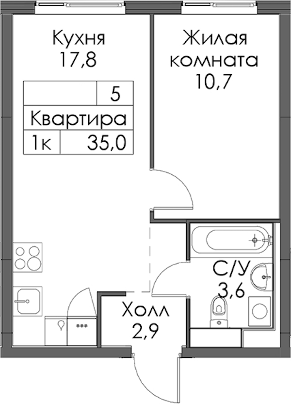 • Площадь кухни17,8 м2