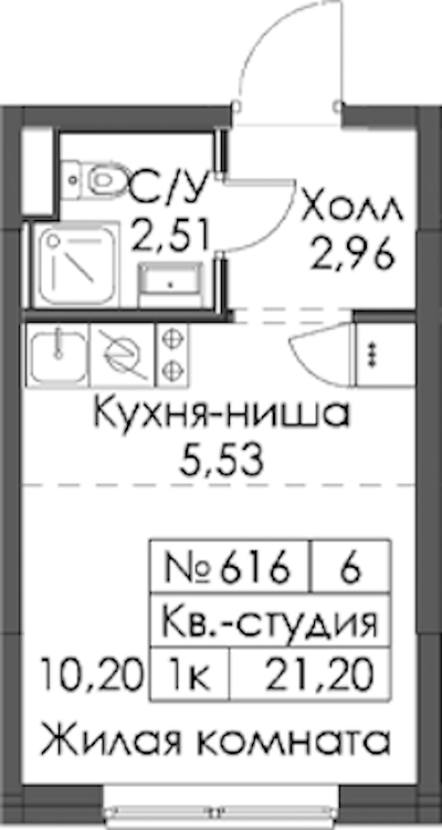 Квартира-студия на 1-ом этаже 21,2 кв.м