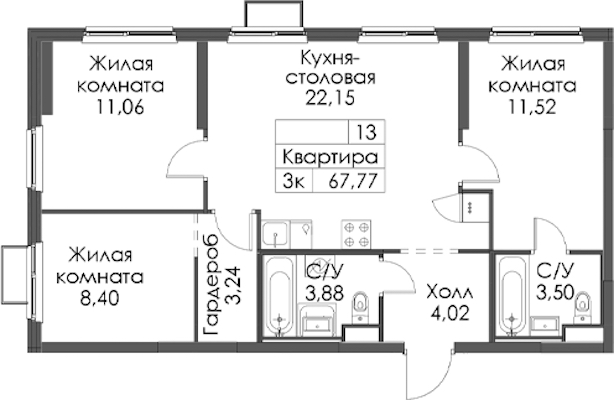 • Площадь67,77 м2
