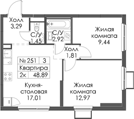 • Площадь48,89 м2