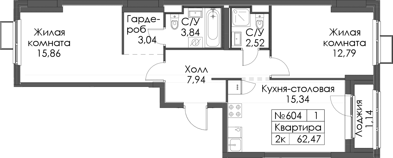 - Площадь62,47 м2