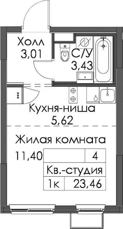 - Площадь23,46 м2