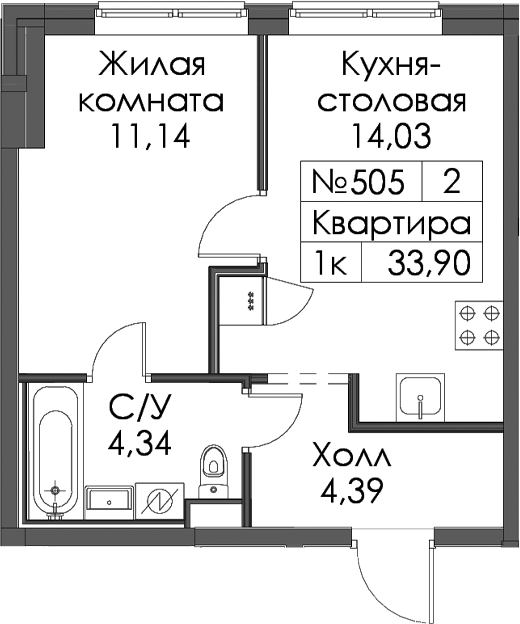 - Площадь33,9 м2