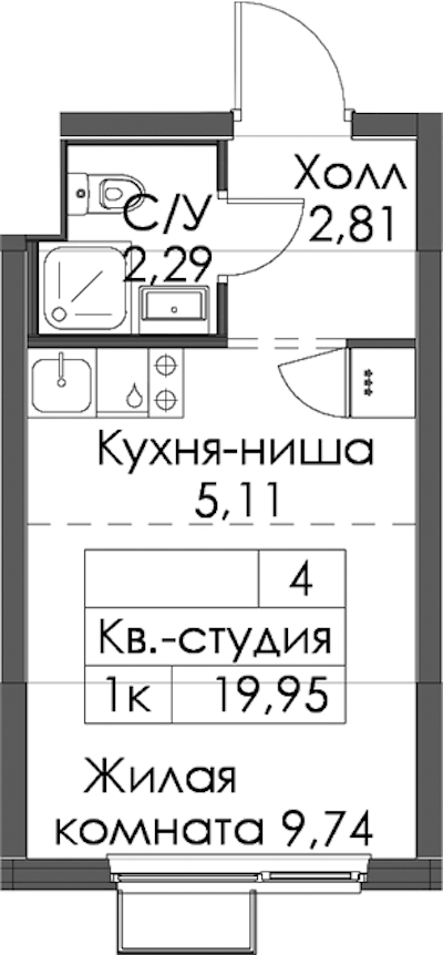 Квартира-студия на 3-ем этаже 19,95 кв.м
