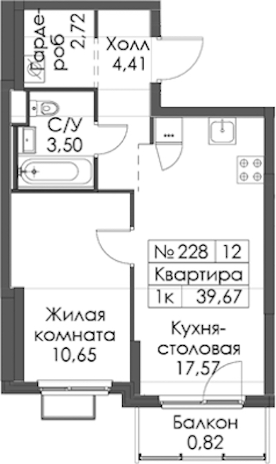 - Площадь39,67 м2
