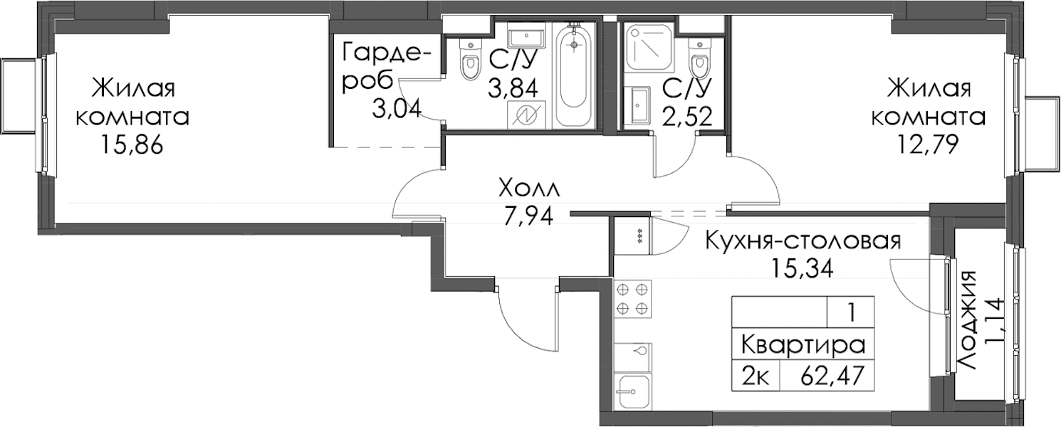 - Площадь62,47 м2