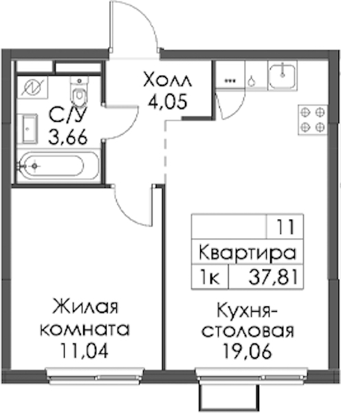 - Площадь37,81 м2