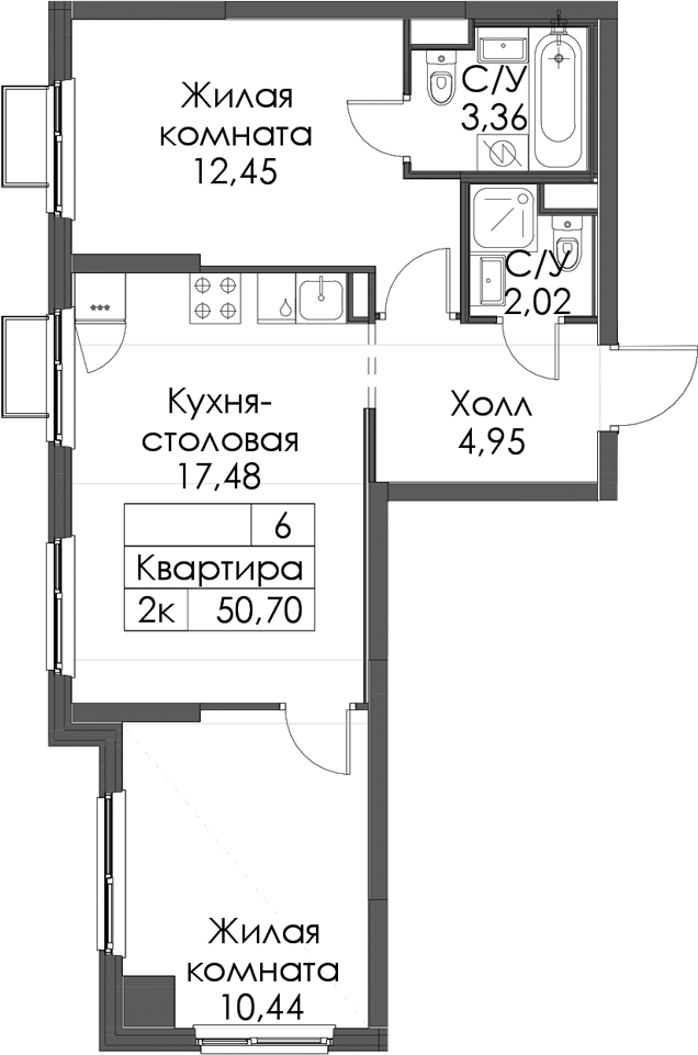 - Площадь50,7 м2