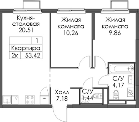 - Площадь53,42 м2