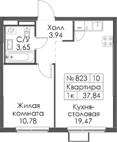- Площадь37,84 м2
