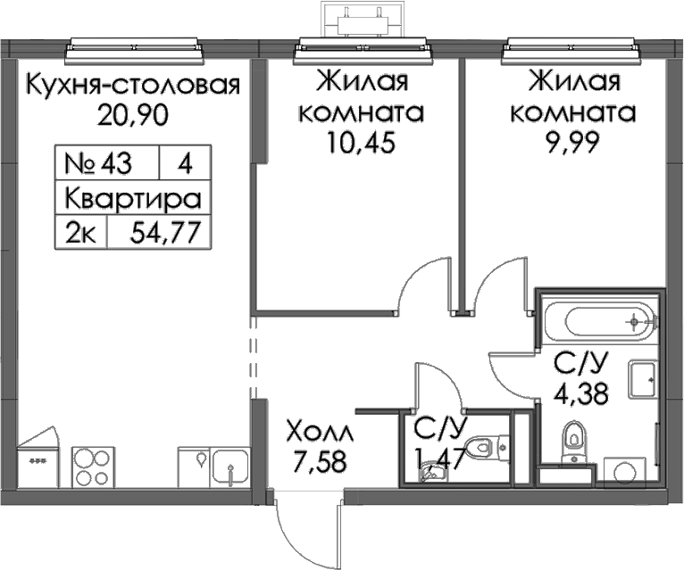 - Площадь54,77 м2