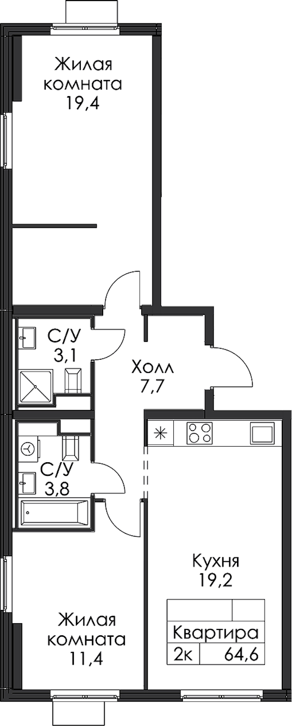- Площадь64,6 м2