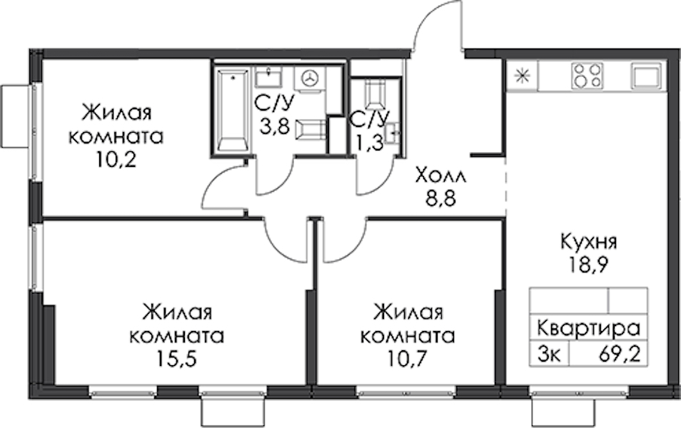 - Площадь69,2 м2