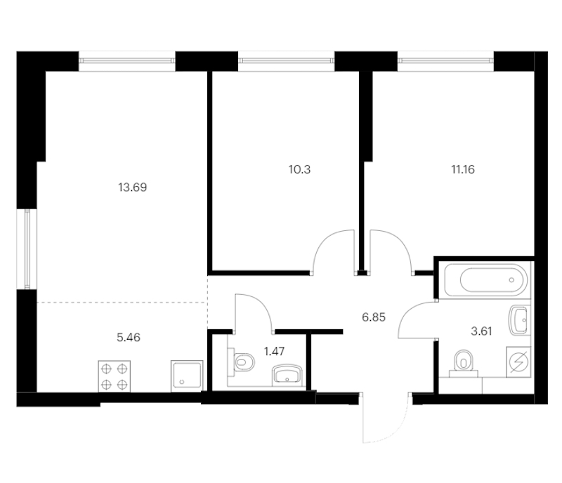 - Площадь52,1 м2